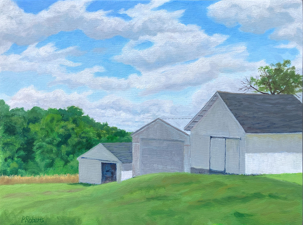 Barns; oil on panel; 16" x 20"